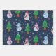Feuille De Papier Cadeau Joli motif Snowman avec arbres de Noël