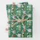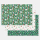 Cet ensemble charmant et mignon de trois papiers d'emballage de Noël présente des illustrations de forêt d'arbres de Noël, de village d'hiver et de flocs de neige.