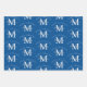 Feuille De Papier Cadeau Joyeux Noël bleu blanc monogramme