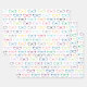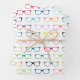 Feuilles de papier d'emballage coloré avec lunettes hipster motif dans les tons aqua, bleu, rouge, violet, orange, jaune, vert citron, gris et blanc.
