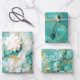 Beau papier d'emballage en marbre doré et vert turquoise dans un style moderne qui éveille la joie et est parfait pour de nombreuses occasions spéciales. Trois conceptions différentes pour un emballage cadeau unique.