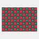Merry Christmas is in a white script. This checkerboard wrapping paper has a classic Christmas color palette. The wrapping paper has a traditional red and green color scheme.