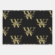 Feuille De Papier Cadeau Monogramme noir et or | Script initial élégant