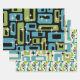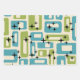 Retro Mid-Century Moderne Motif Abstrait Noir Bleu & Vert.