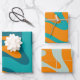 Feuille De Papier Cadeau Motif Abstrait Turquoise Orange Liquide Swirl Retr