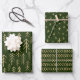 Trois draps festifs avec trois motifs. Arbres tribaux Boho, chevrons et étoiles motifs en feuille d'or imitation. Feuilles de papier Motif d'hiver Bohemian Green Gold. Couleur #1B3007