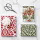 Damask Pattern Vert Rouge Blanc Noël Style traditionnel pour votre emballage festif, chaque feuille avec un motif différent.