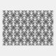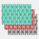 Papier enveloppant dans un kimono japonais classique de médaillons de feuilles et de fleurs stylisés, à quatre sens, dans un turquoise profond sur un arrière - plan d'aqua doux, blanc sur un arrière - plan rouge chinois profond, noir sur un arrière - plan blanc