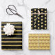 Faux noir et or Foil Noël Polka Dot Stripes Motif Carré Papier d'emballage de vacances.