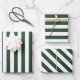Feuille De Papier Cadeau Motif élégant rayé vert chasseur et blanc