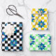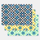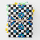 Feuille De Papier Cadeau Motif Retro Chess Checker fleurs bleues