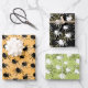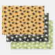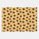 Beau papier d'emballage motif en toile noir et blanc avec araignée et araignée dans un fond noir, orange et vert.