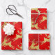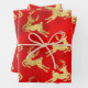 Feuille De Papier Cadeau Noël des rennes rouges et dorés