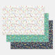 Feux de Noël Papier d'emballage Motif de vacances de Ricaso - conçu en vert, blanc et bleu profond avec détails lumineux colorés