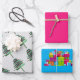 Feuille De Papier Cadeau Noël moderne Vert rose et bleu
