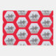 Noël Surfer Couple Rouge Blanc Vert Feuilles de papier à envelopper. Couple de surf entrant dans l'océan dans un motif hexagone, avec le motif dans trois tailles graduées.