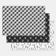 Feuilles d'emballage rustiques, parfaites pour les fêtes de Noël et de célibataire et les anniversaires, avec trois motifs assortis en noir et blanc : plaid, cerfs et pins.