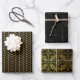 draps d'emballage cadeau à motifs noir et or : herringbone, marbré, géométrique
