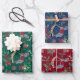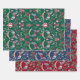 Joli emballage cadeau nostalgique avec des chevaux rocking peints à la main, des nounours et des éléments botaniques comme le mistletoe et les branches de sapin. Ce papier apporte un charme festif à tout cadeau. L'ensemble comprend trois feuilles en vert, bleu et rouge.