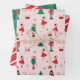 Ce papier d'emballage de Noël Nutcracker présente 3 motifs fantaisistes séparés dans un thème rose, rouge et vert. Feuille 1 : motif de ballerine et de noix; Feuille 2 : bandes de canne à bonbons rouges et roses; Feuille 3 : Fa la motif en vert et or. Un cadeau moderne et mignon, parfait pour les vacances!