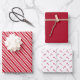 Une collection de papiers d'emballage de vacances coordonnés. L'un est à rayures rouges et blanches, le deuxième est un arrière - plan blanc avec un motif sucre de canne et le troisième est un rouge massif coordonné. Mélanger et faire correspondre.