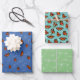 Ces feuilles de papier d'emballage motif de papillon amusantes (3) présentent des papillons Monarque colorés et leurs pistes de vol vif et tourbillonnantes sur le bleu ; des monarques dans des positions de vol variées sur des fleurs de doodle blanches motif sur le turquoise clair ; et des fleurs de doodle géantes motif en blanc seul modelé sur un arrière - plan vert menthe - par katz_zyd_zyd nouvelles