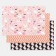 Halloween spooktacular fête enveloppant des feuilles de papier. Ce papier d'emballage présente des toiles d'araignée, des fantômes, des citrouilles, des chauves-souris, des araignées, des feuilles, des cornes, des étoiles, des marguerites sur arrière - plan rose, un chevron rose orange et des fantômes roses poussiéreux sur arrière - plan noir.