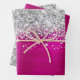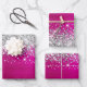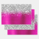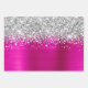 Des feuilles de papier d'emballage de style glam pour son anniversaire. Le bord présente une parties scintillant en faux argent et brille. L'arrière - plan est un art numérique en métal brossé rose-chaud fuchsia. Ces dessins artistiques s'impriment comme une photo sur votre emballage cadeau.
