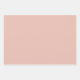 Set of three flat wrapping paper sheets in pretty pastel colors, one each of: pink, green and orange.