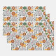 Patterned design featuring elephants, lions, and trees in warm tones of gray, orange, and green. The whimsical arrangement creates a playful, cheerful tone.