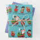 Feuille De Papier Cadeau Père Noël et garçon multiculturel en train