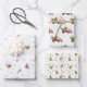 Trois feuilles de papier d'emballage de Noël. Père Noël sur le sentier, Père Noël avec un camion vintage, et les arbres de Noël. Tous ont un arrière - plan blanc.