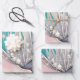 Petite colombe blanche avec ailes éthérées Papier à envelopper, ce design présente une belle petite colombe blanche avec ailes éthérées sur une aquarelle arrière - plan bleue.