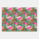 Des feuilles de palmiers vert vif, des taches de léopard doré chatoyantes et de délicates plaques de fourrure rose se mêlent dans ces papiers d'emballage, inspirés d'un mélange de motifs d'animaux de safari. Parfait pour ajouter une touche exotique à vos faveurs spéciales.