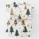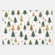Feuille De Papier Cadeau Pins D'Or Et De Vert Noël