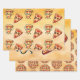Les amateurs de pizzas amusantes emballent des feuilles de papier. Kawaii pizza tranches, pizza entière et pizza motif couvre 3 feuilles - avec tomate, pepperoni et fromage Quirky papier d'emballage unique pour l'anniversaire ou toute occasion.