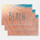 Plage sablonneuse bleu océan vagues artisanat découpage feuille d'emballage ensemble de trois. Thème nautique côtier en bord de mer. Magnifique, inspiré tropical, décor de vacances d'été enveloppé cadeau. Chic, tendance, joli, moderne, élégant, cool, design voyage. Le texte peut être customisé. Copyright de l'image Marg Seregelyi Photography.