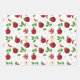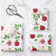 Feuille De Papier Cadeau Pommes rouges, fleurs et Motif de verdure