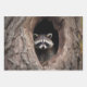 Joli petit raton laveur avec vue de l'intérieur du grand arbre.