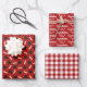 Wrap gifts for the graduate in different but matching wrapping papers, all with red as their base color. One with graduation caps and diplomas. One with Congratulations, class of the Year, and one with a printed gingham pattern.