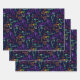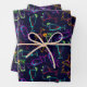 Des verres à cocktails en néon sur un arrière - plan bleu minuit sont présentés sur ces feuilles de papier rétro, amusant pour toutes les occasions.
