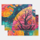 Feuille De Papier Cadeau rose et or pleine lune Arbre Silhouette