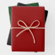 Ces feuilles de papier d'emballage signifient les couleurs de Kwanzaa - elles comprennent une feuille qui est solide, une feuille qui est noir solide et une feuille qui est verte avec l'expression 'happy kwanzaa' en noir. Le texte peut être personnalisé.