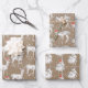 Feuilles en papier d'emballage rustique kraft avec 3 rennes blancs différents pour bébés entourés de flocons de neige.