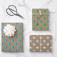 Un trio de papier d'emballage festif pour la période des fêtes de Noël avec des étoiles turquoise bleu, rouge et argent sur un arrière - plan de papier kraft rustique. Idéal pour toute occasion et fait un emballage cadeau impressionnant.