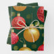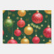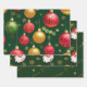Cet ensemble vert gras est livré avec trois (3) feuilles de papier d'emballage. L'une ayant de grandes boules de Noël à la gloire, la deuxième est un motif d'objets Père Noël et Noël et la troisième une typographie avec un look en or gaufré.