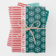 Feuille De Papier Cadeau Snowflakes, sapins de Noël rayures rouges turquois