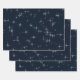 Un ensemble de trois feuilles de papier d'emballage décoratives de 19x29" avec une cascade d'étoiles bleues nuageuses délicates et scintillantes contre un arrière - plan bleu nuit. Idéal pour offrir des présentations créatives et élégantes et do-it-yourself des projets artisanaux.