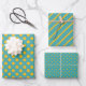 Feuille De Papier Cadeau Teal With Yellow Messy Stripes & Messy Polka Dots