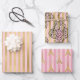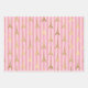 Papier d'emballage vintage à motifs rose et or parisien avec rayures, raisins et tour Eiffel.